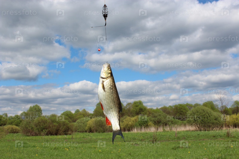 Красивый пойманный голавль на крючке