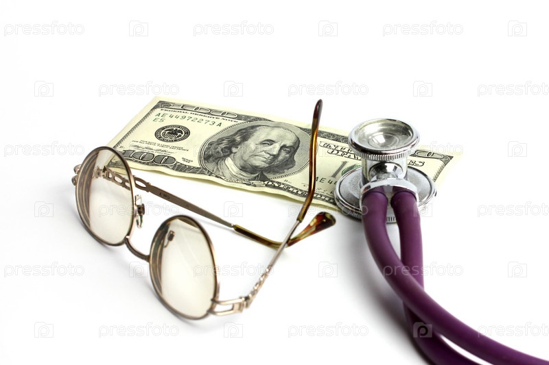 Стетоскоп врача и доллары в качестве иллюстрации платной медицины