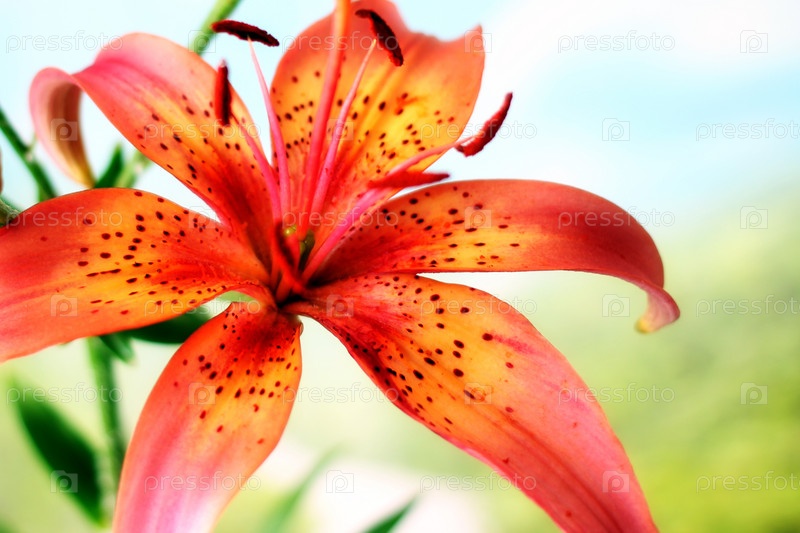 Красивый яркий цветок лилии на естественном фоне