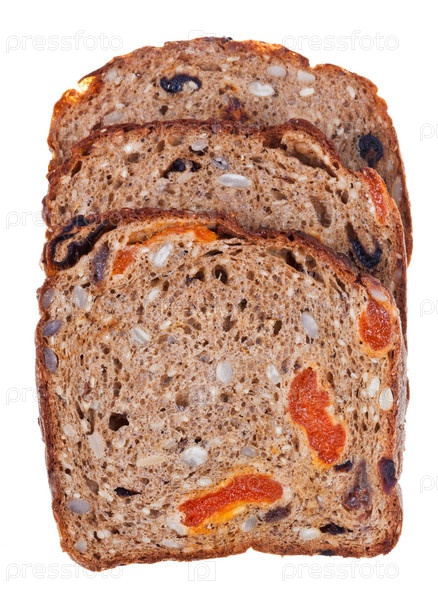 Кусочки цельнозернового хлеба с сухофруктами