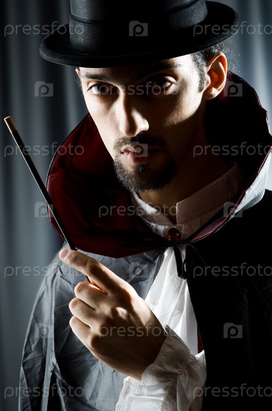 Маг с палочкой в темной комнате