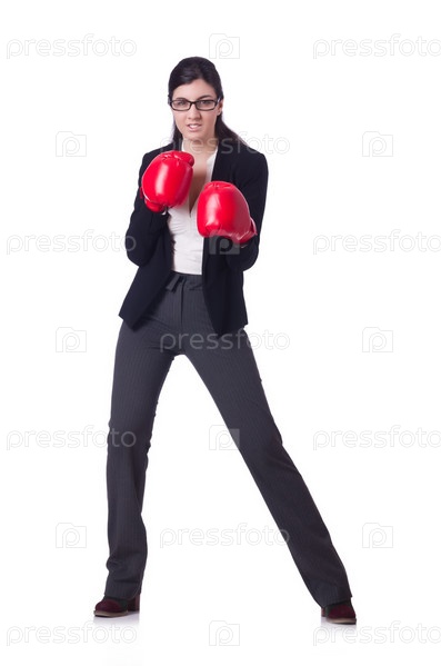 Бизнес-леди в концепции бокса на белом
