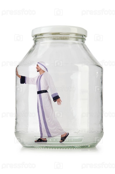 Арабский бизнесмен в стеклянной банке
