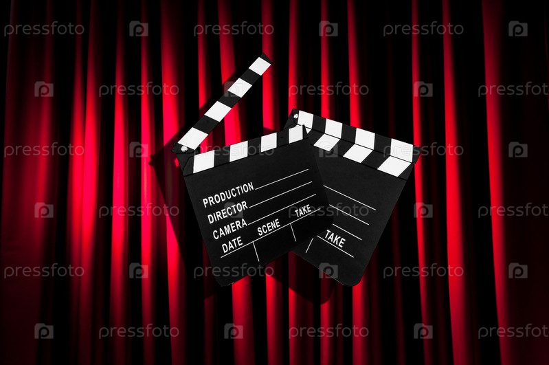 Кино-хлопушки на фоне занавеса