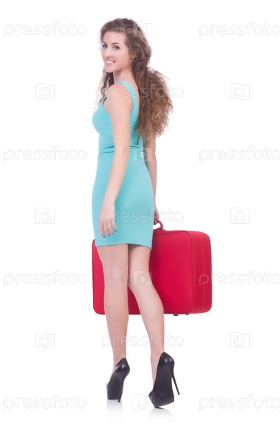 Женщина с чемоданом перед поездкой