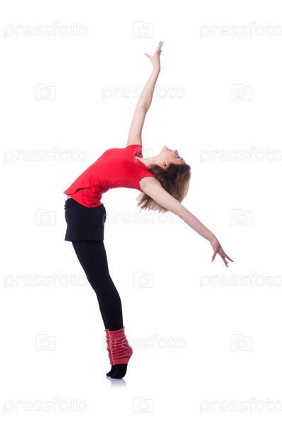 Молодая гимнасткка на белом фоне