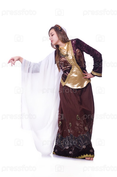 Молодая леди танцует традиционный азербайджанский танец
