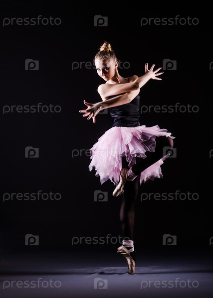 Балерина танцует в темной студии