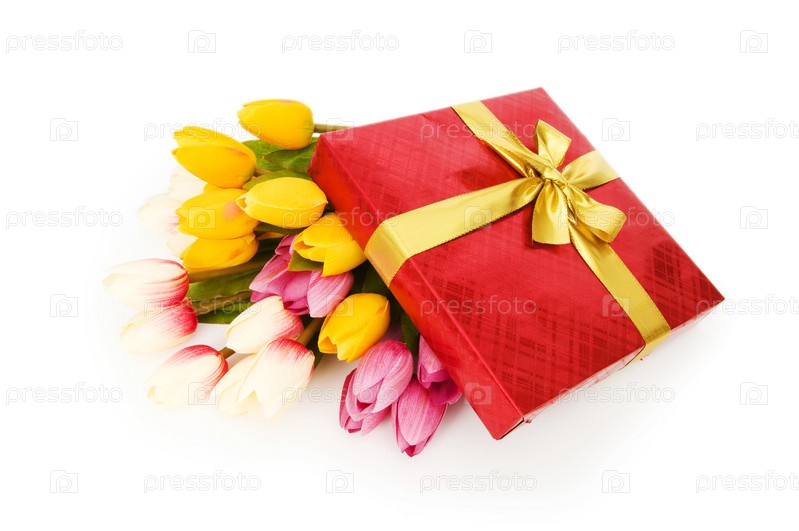 Букет тюльпанов под подарочной коробкой