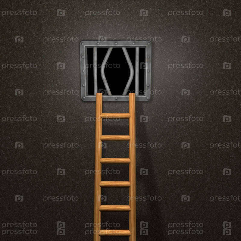 Тюремное окно и деревянная лестница - 3d иллюстрация