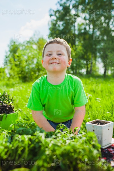 Мальчик играет в траве