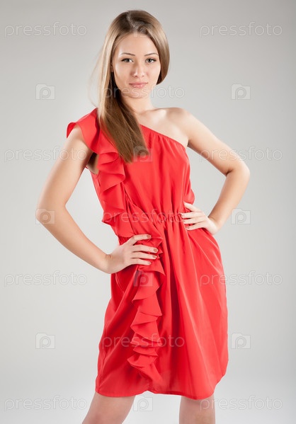 Привлекательная девушка в красном платье