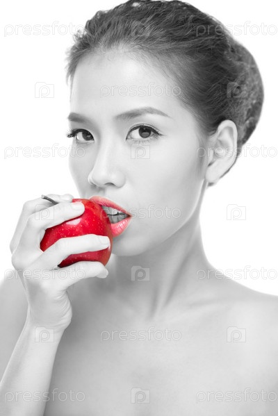 Красные губы, красное яблоко