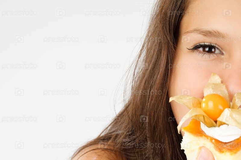 Портрет молодой девушки с десертом в руках