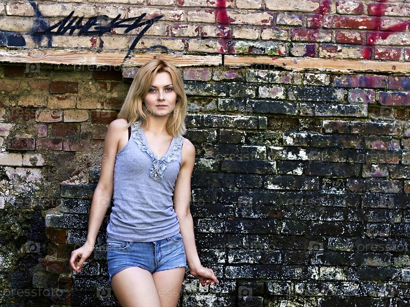 Портрет молодой чувственной блондинки на фоне стены с граффити