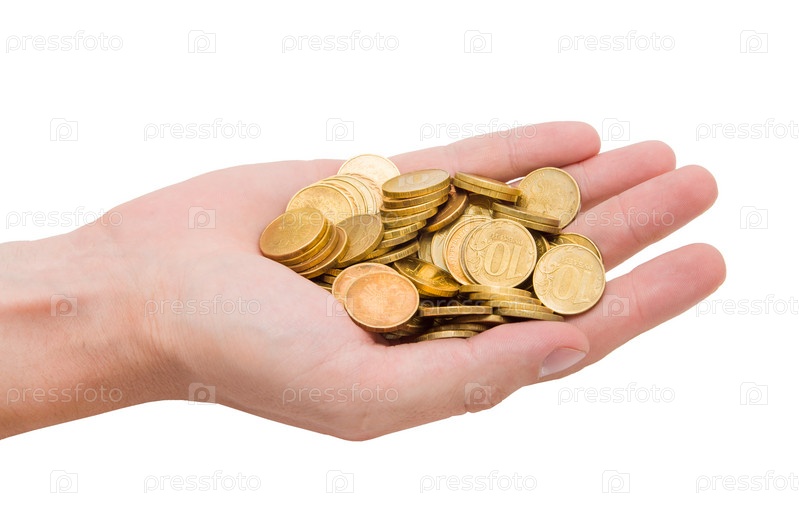 Золотые монеты на ладони