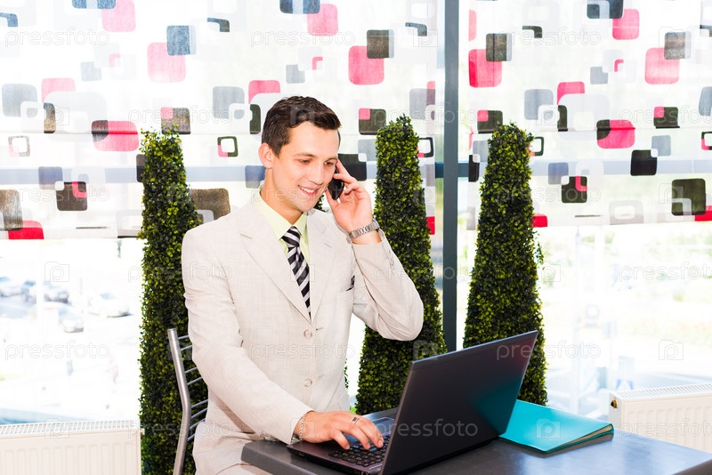 Бизнесмен сидит в кафе
