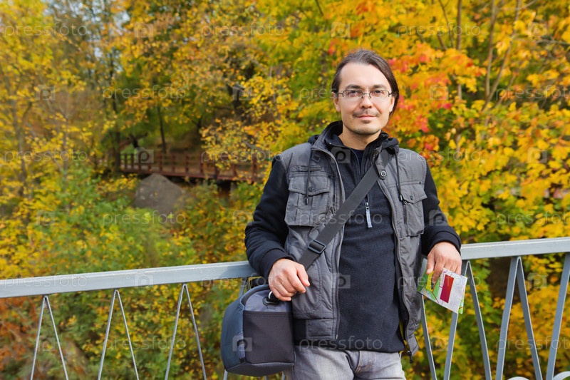 Турист в осеннем парке