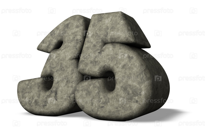Каменная цифра 35 на белом фоне. 3d иллюстрация