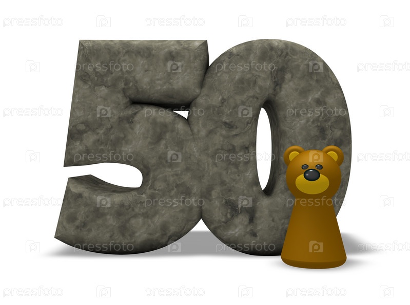 Каменная цифра 50 на белом фоне. 3d иллюстрация