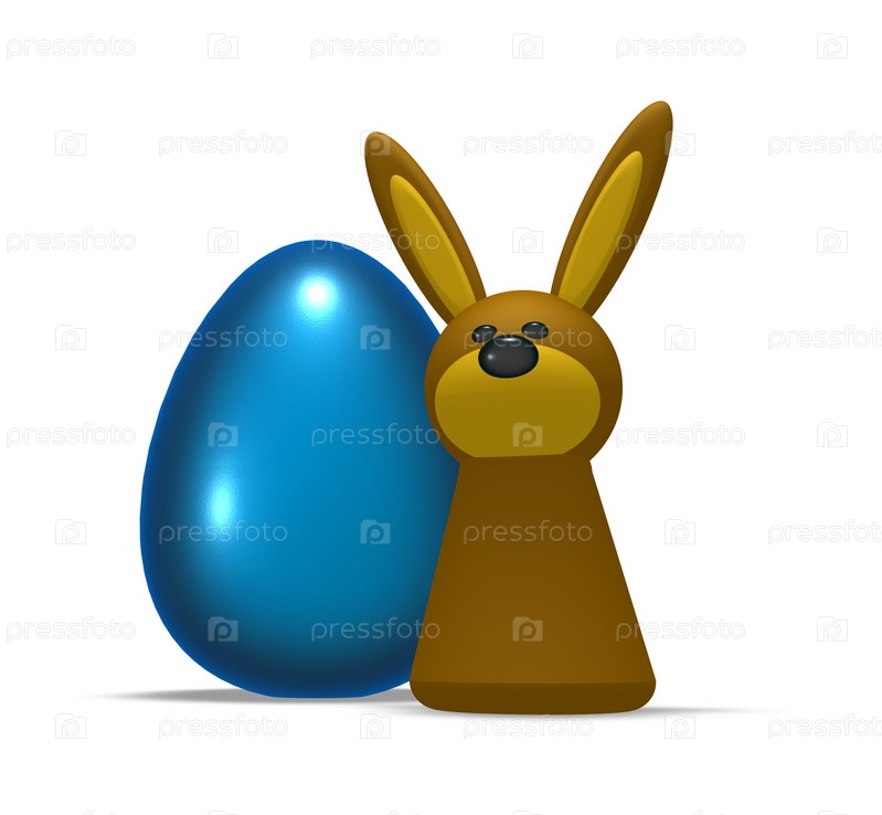 Кролик и пасхальные яйца на белом фоне - 3d иллюстрация