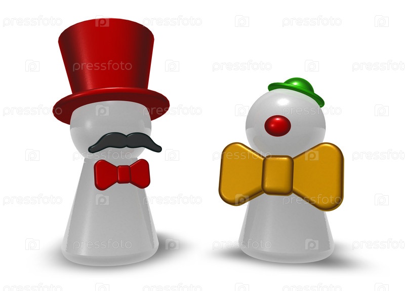 Клоун и инспектор манежа на белом фоне - 3d иллюстрация