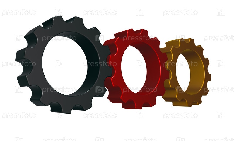 Три зубчатых колеса в цвете немецкого флага - 3d иллюстрация