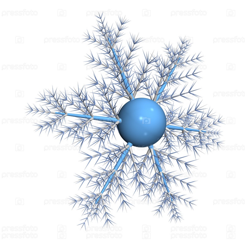 Синяя снежинка, изолированная на белом фоне. 3D