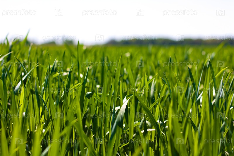 Поле весенней травы и солнечный день