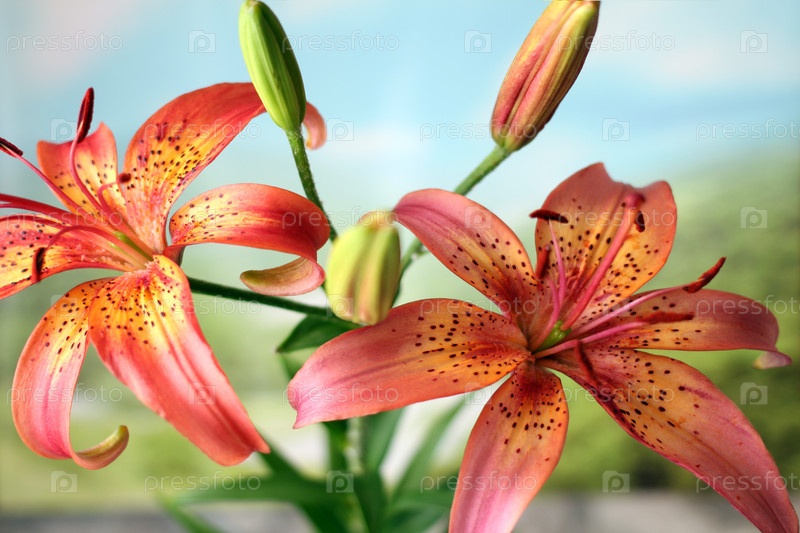 Красивый яркий цветок лилии на фоне природы