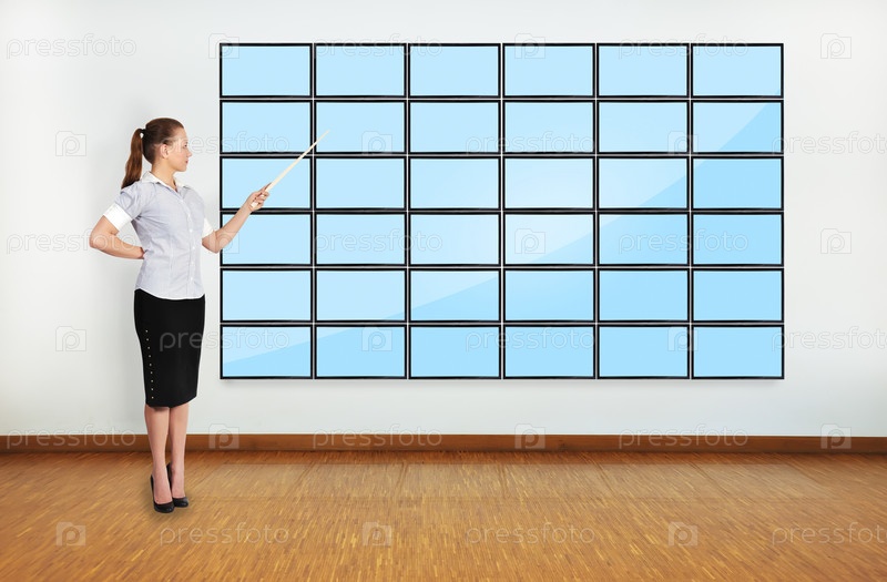 Бизнес-леди с указкой в офисе