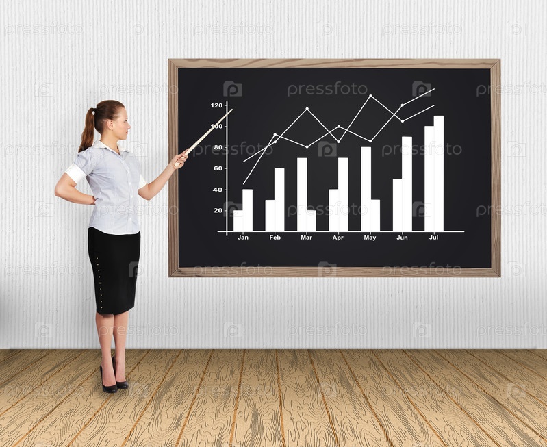 Женщина указывает на диаграмму