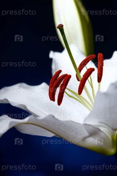 Белая лилия на синем фоне