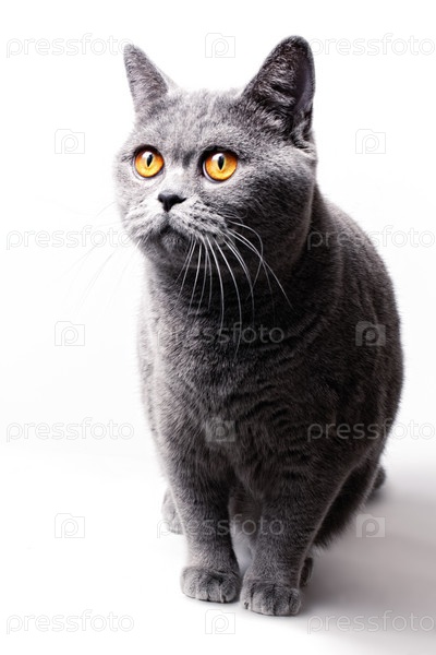 Серая британская кошка с желтми глазами