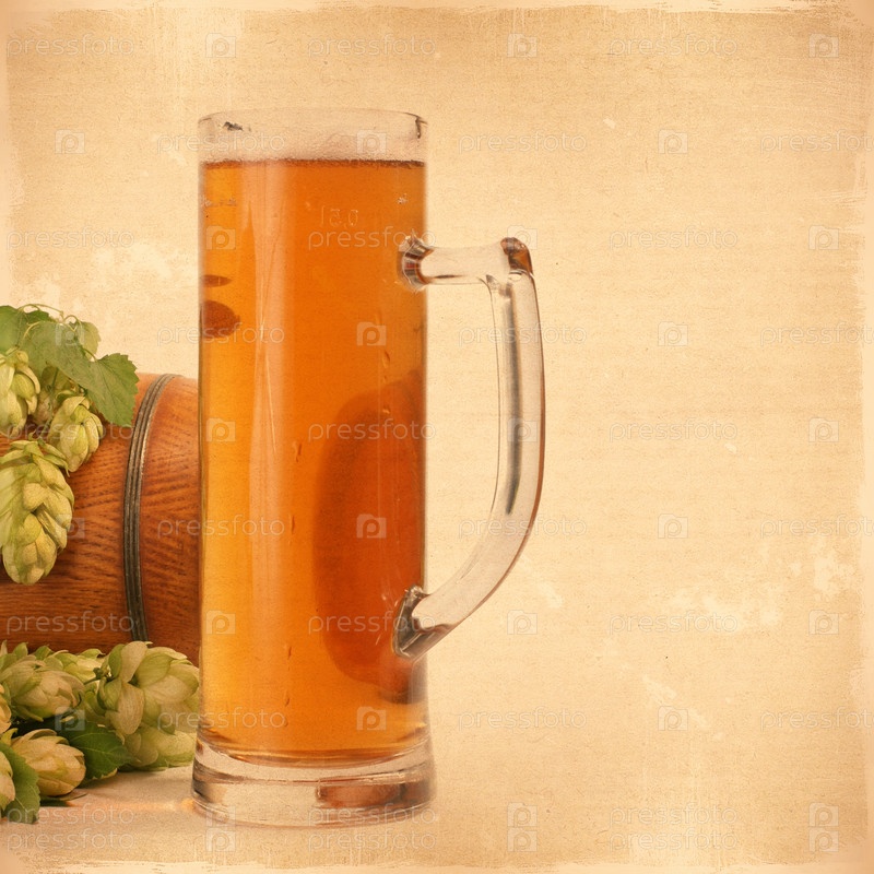 Винтажный фон с бокалом пива