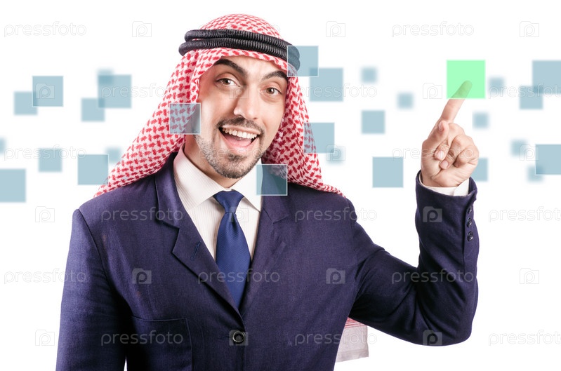 Араб нажимает на виртуальные кнопки