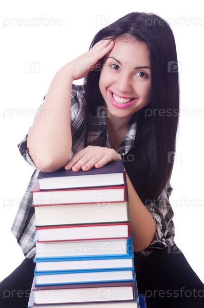 Студентка с книгами на белом