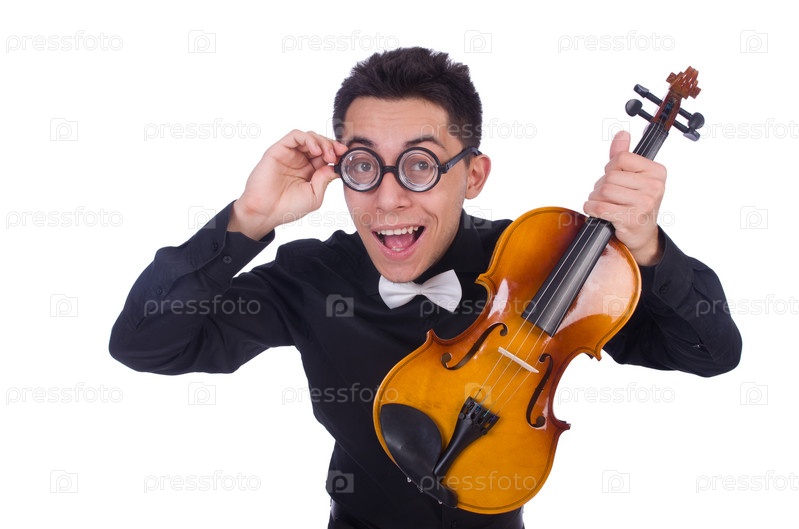 Смешной скрипач на белом