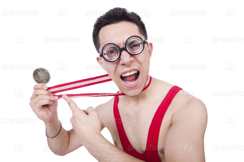 Смешной борец с медалью победителя