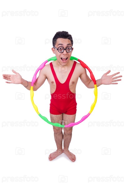Смешной спортсмен крутит обруч