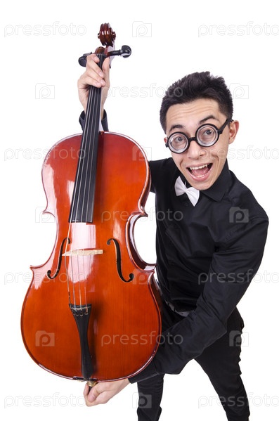 Смешной скрипач на белом фоне