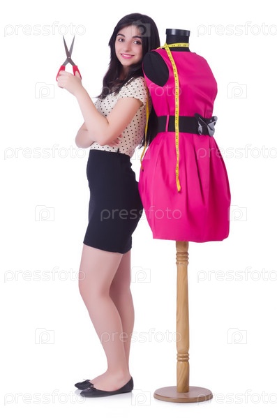 Молодой портной, изолированный на белом