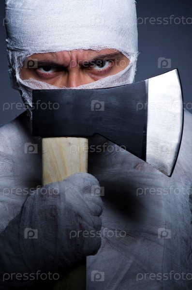 Мумия с топором в концепции Хэллоуина