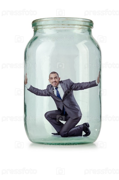 Молодой предприниматель в стеклянной банке