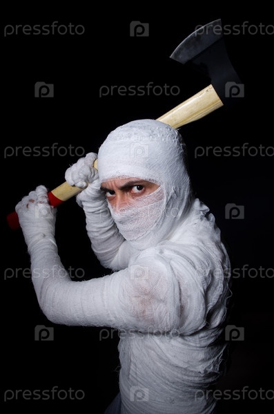 Мумия с топором в концепции Хэллоуина