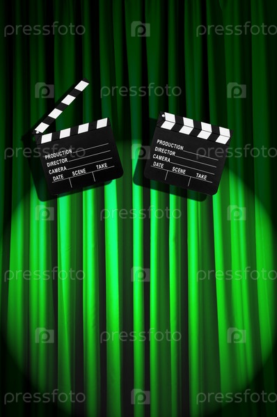 Кинохлопушки на фоне занавеса