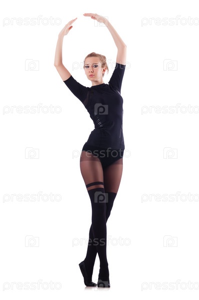 Женщина танцует, изолированная на белом