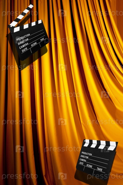 Кинохлопушки на фоне занавеса