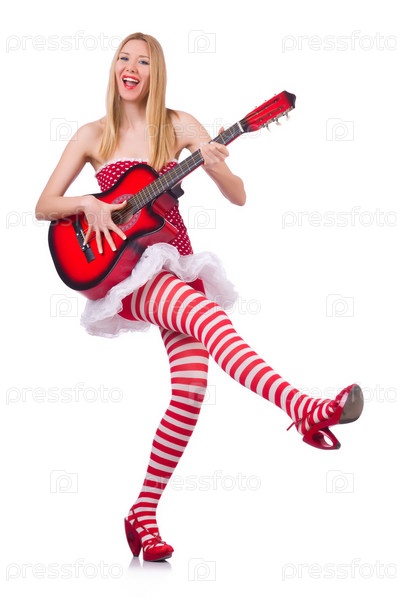 Молодой гитарист, изолированный на белом