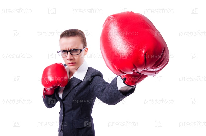 Женщина с боксерскими перчатками на белом фоне